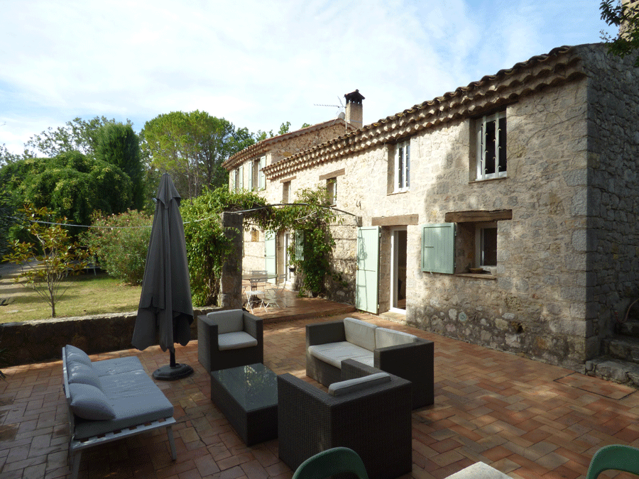 A stone old mas, situated on a beautiful flat plot of about 1,2 hectares, planted with olive trees and fruit trees, in a quiet and protected area, but not isolated, benefitting from a view over the village.