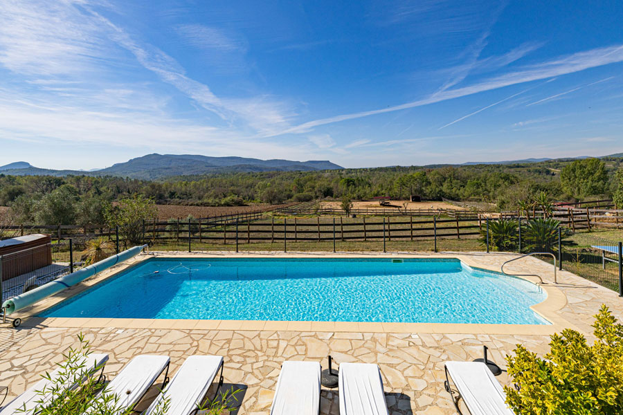 Propriété de 560m2 habitables environ, sur 16.451m2 de terrain, plusieurs espaces de vie, nombreuses chambres, piscine, garage, vue, à vendre, à Fayence