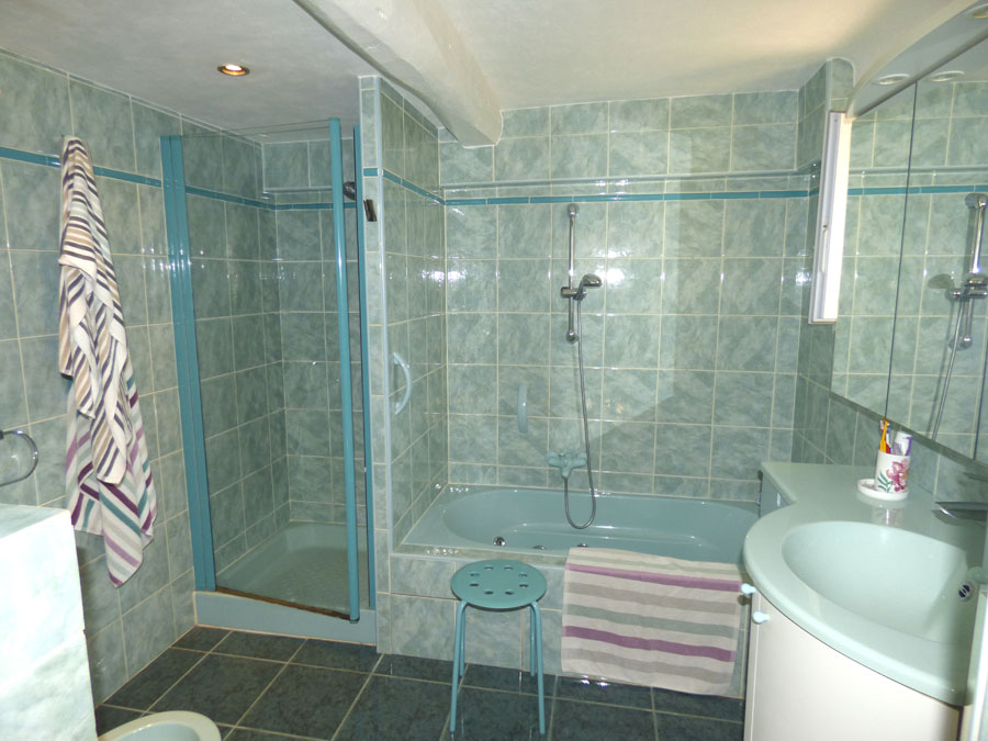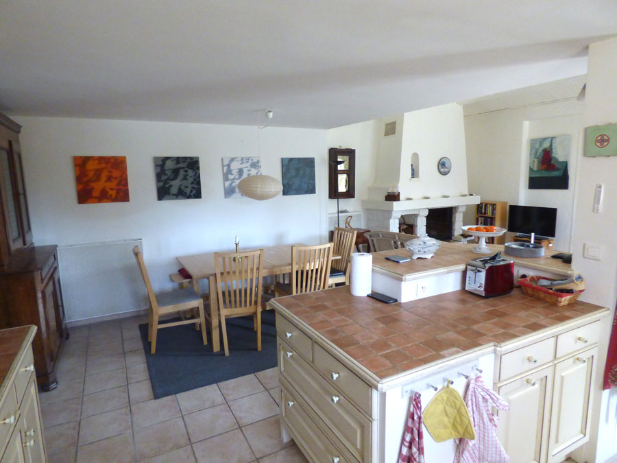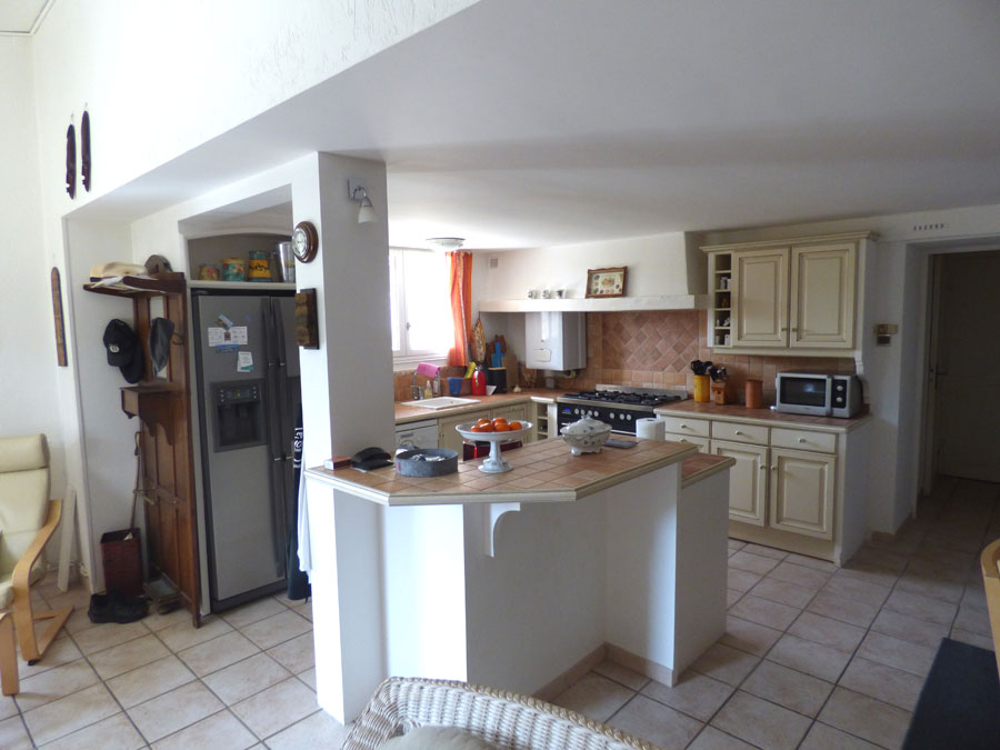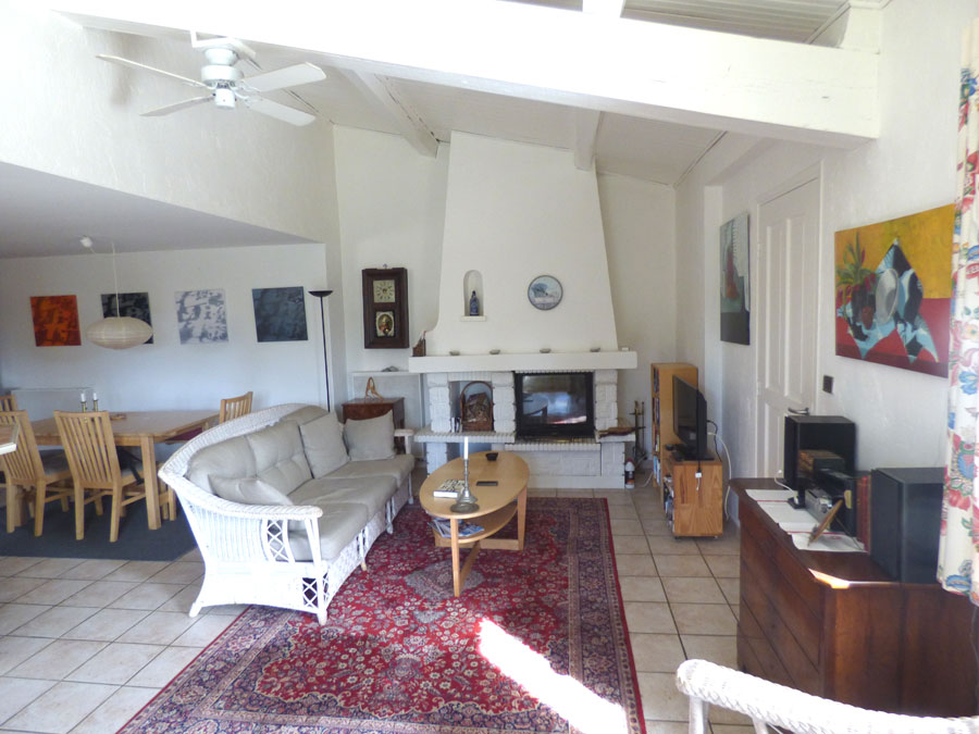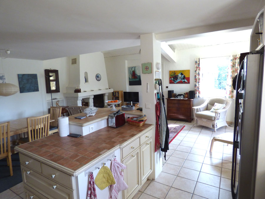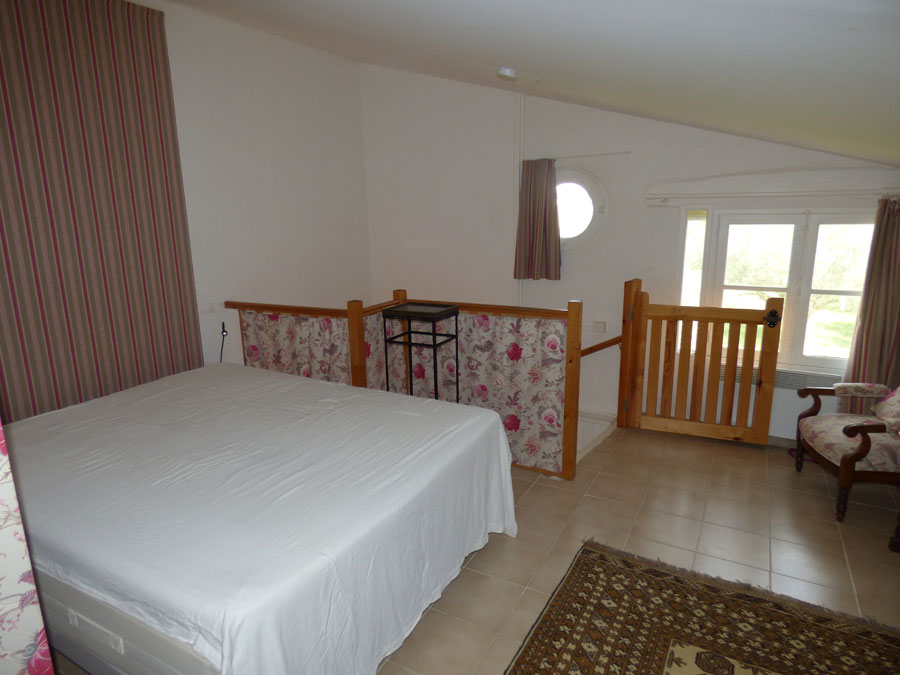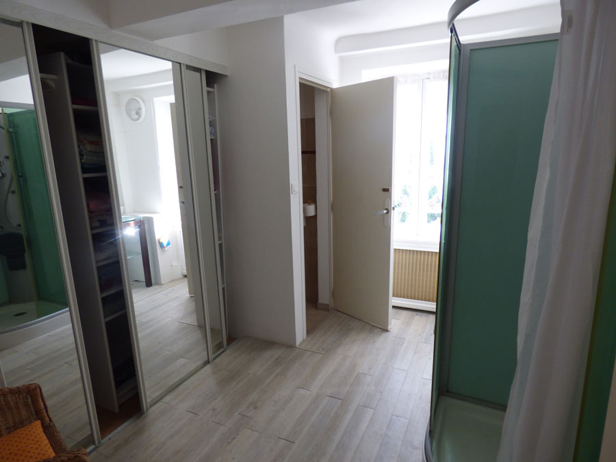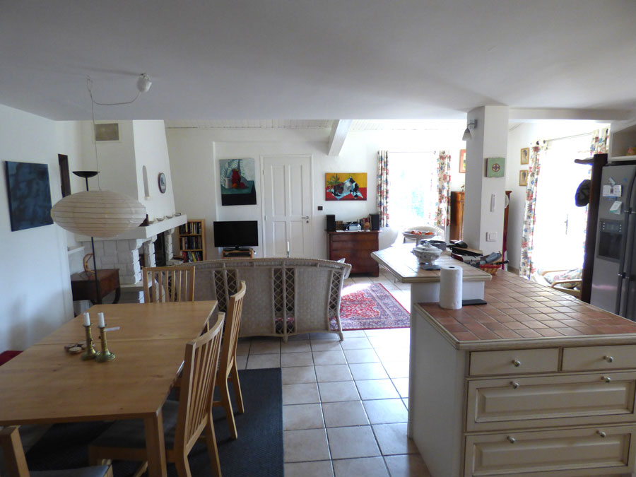 Rez-de-chaussée: entrée, séjour avec cheminée (insert), cuisine Américaine équipée, WC indépendant avec lavabo, une chambre avec placards, ouvrant sur une terrasse, salle de bains + douche.