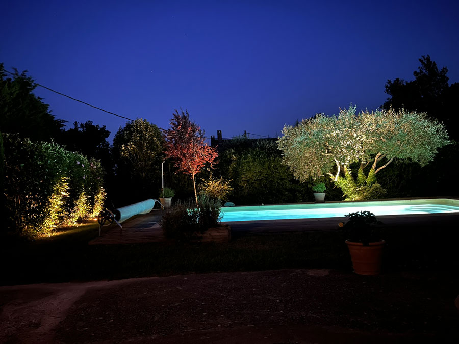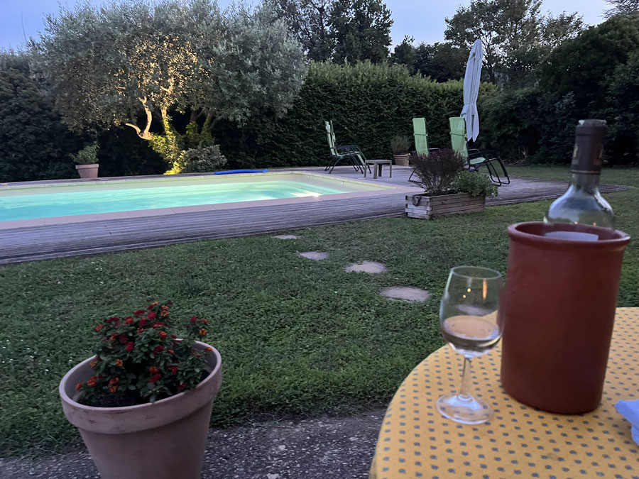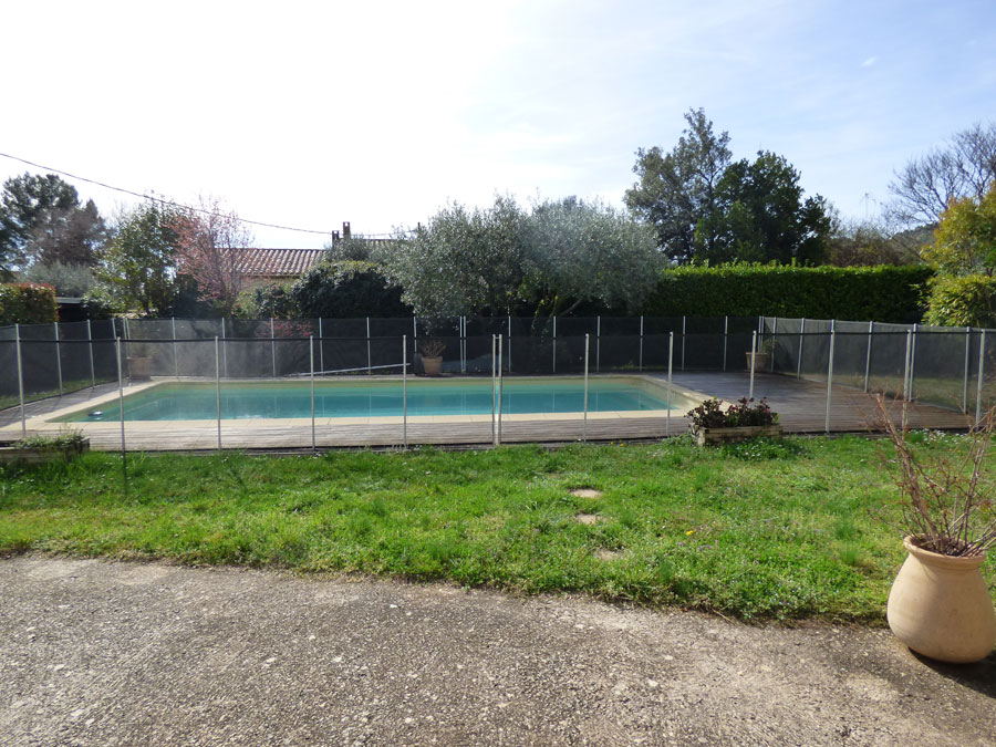 Piscine (9,5 x 4) avec terrasse en bois autour, cuisine d’été, buanderie.