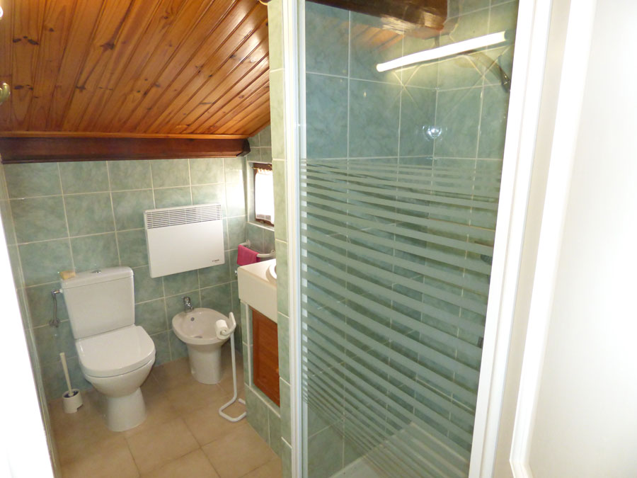 Deuxième étage: une chambre mansardée avec placards, salle d’eau.