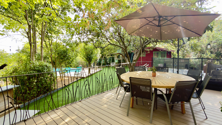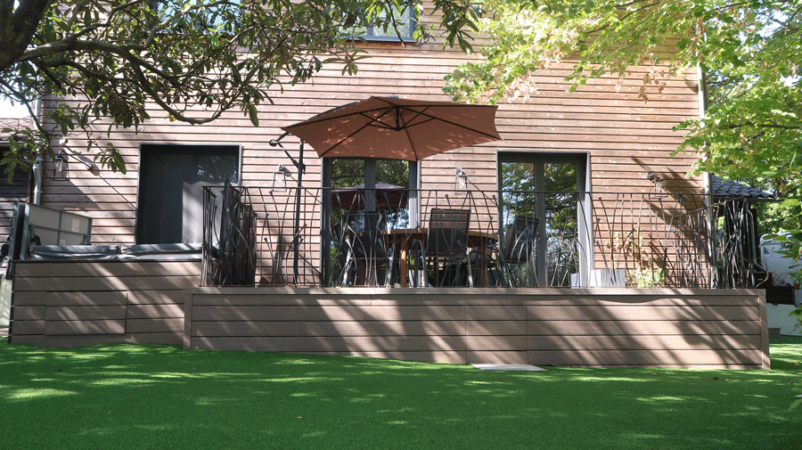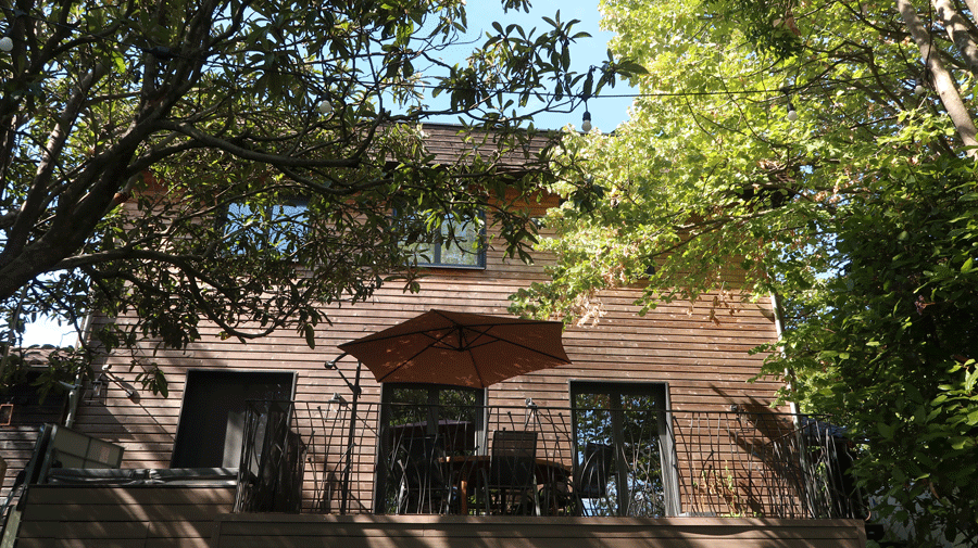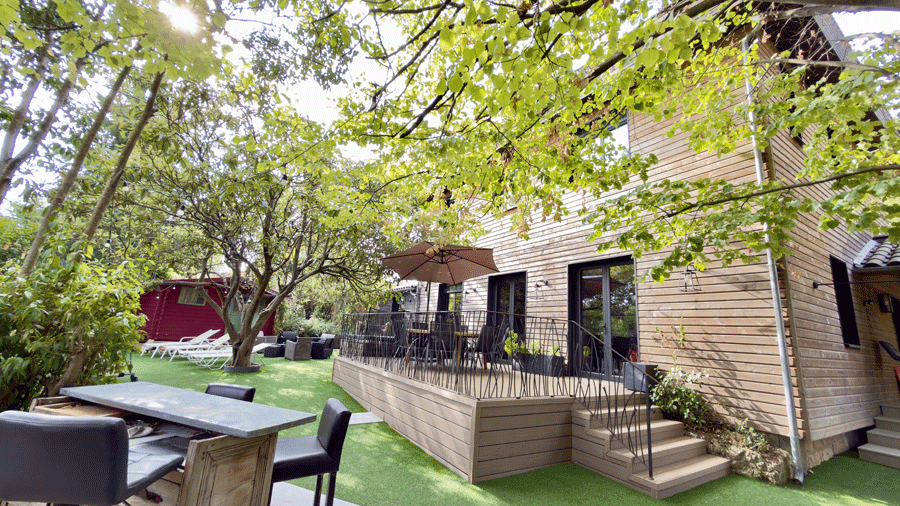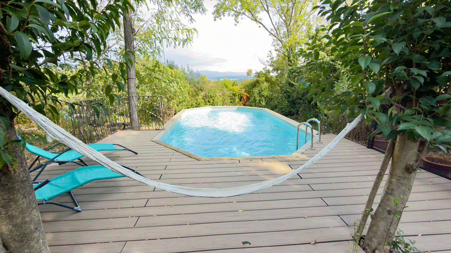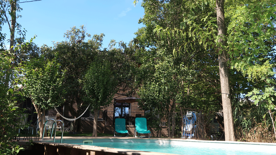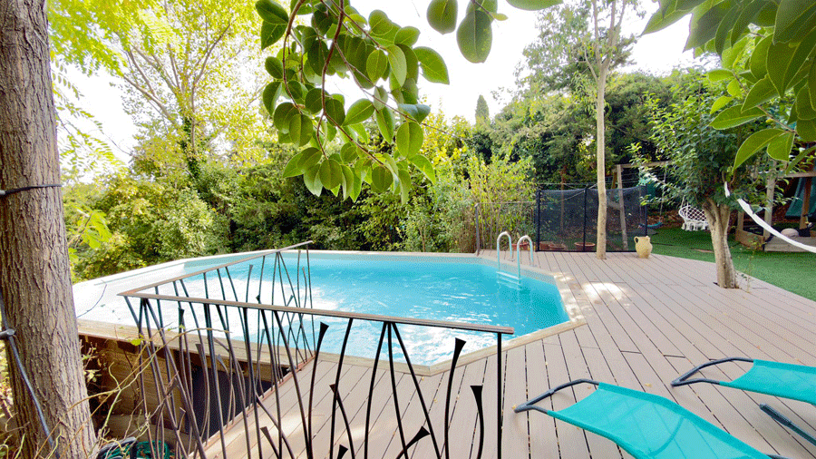 Piscine (8 x 4) avec terrasse, panneaux solaires, réservoir de 5000 litres pour récupération d’eau.