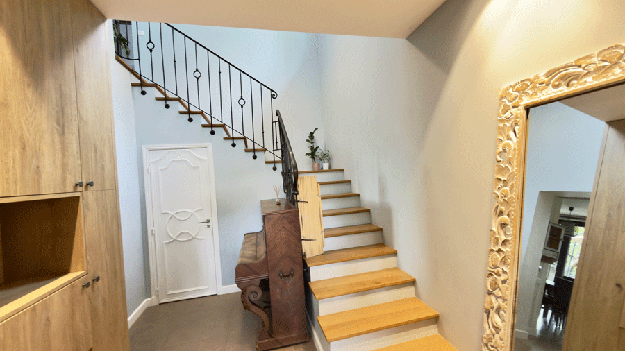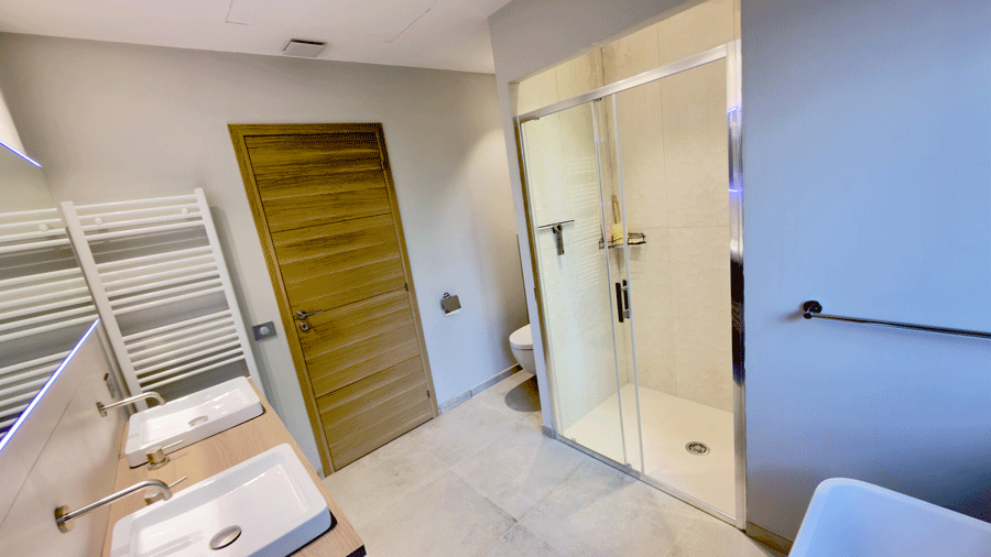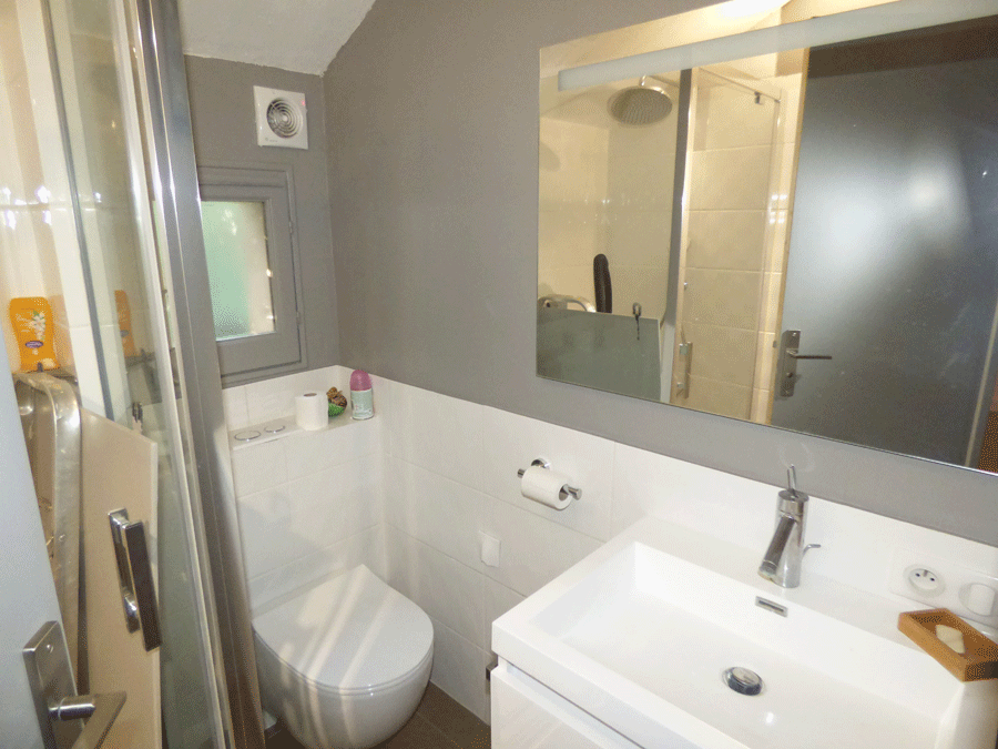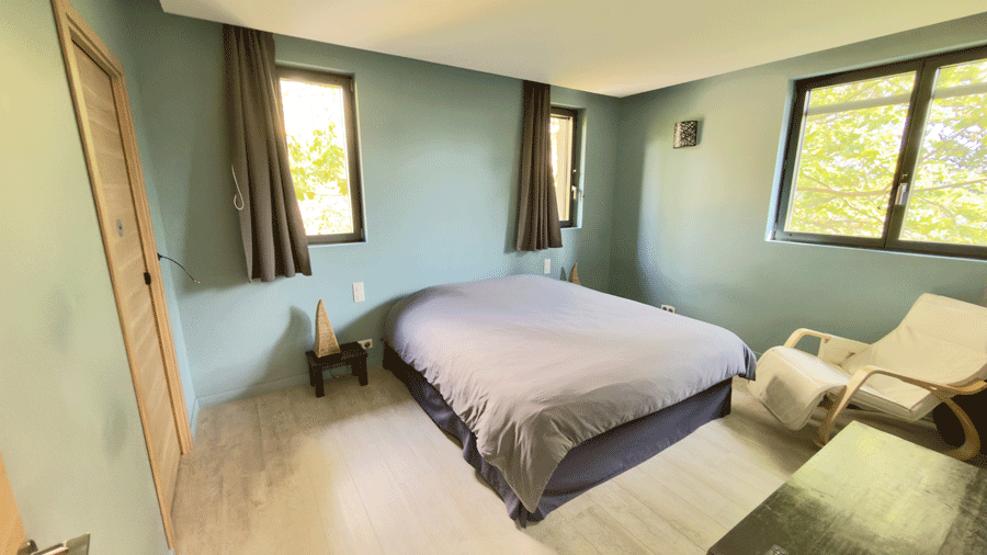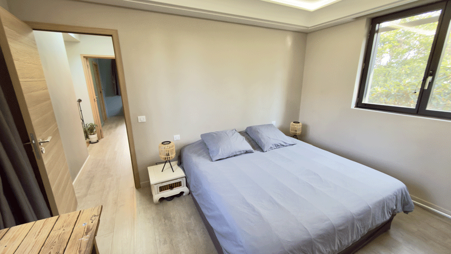 A l’étage: une chambre avec dressing, une deuxième chambre, salle de bains + douche.